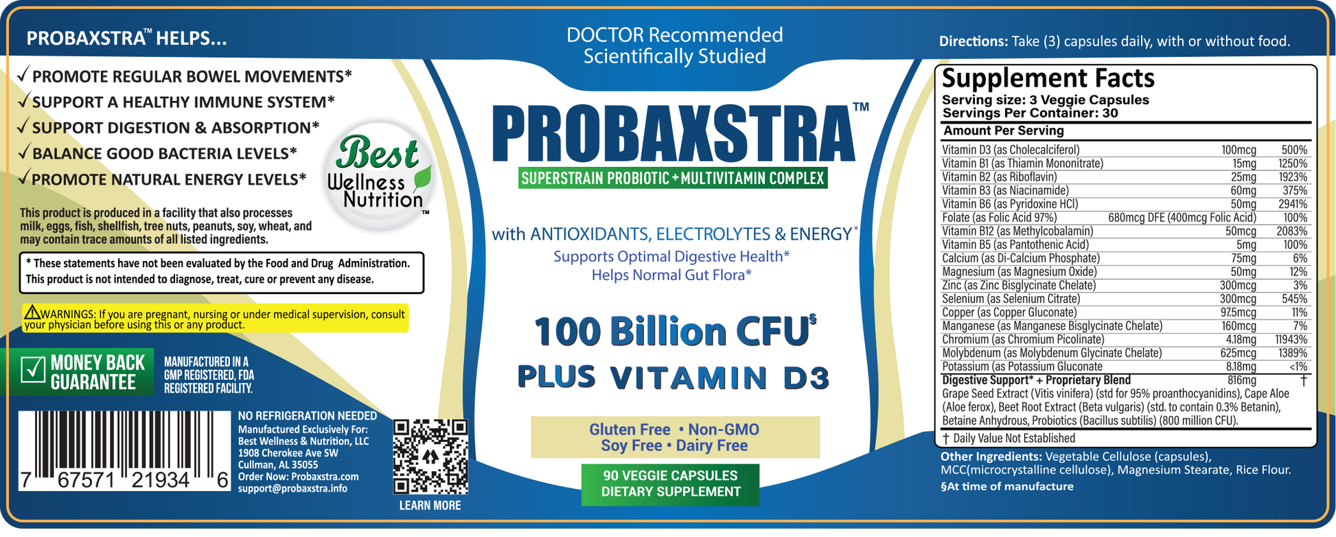 Probaxstra™ - Superstrain Probiotic + Multivitamin Complex w/Vitamin D3